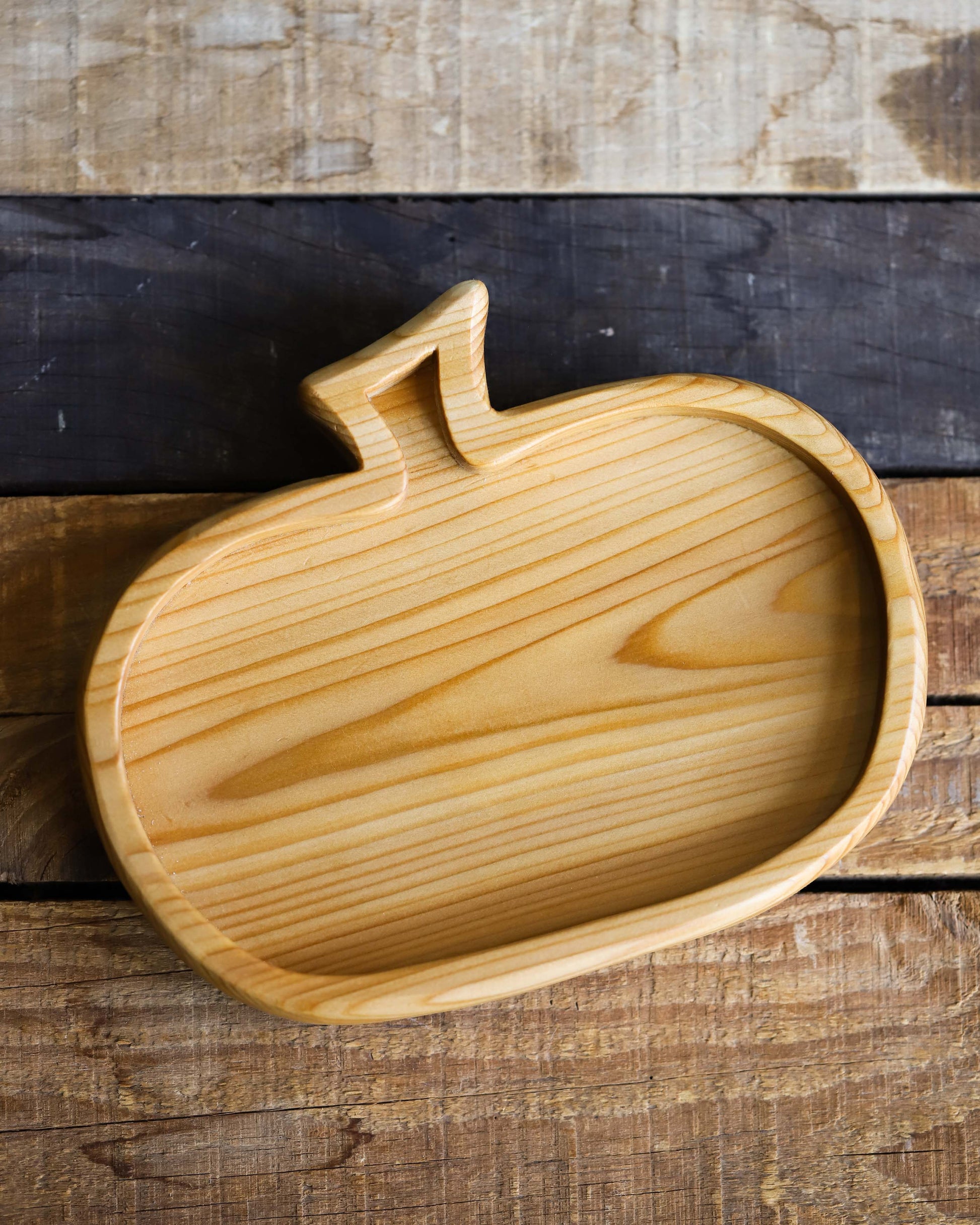 Cedar wood pumpkin shaped tray with tung oil finish.