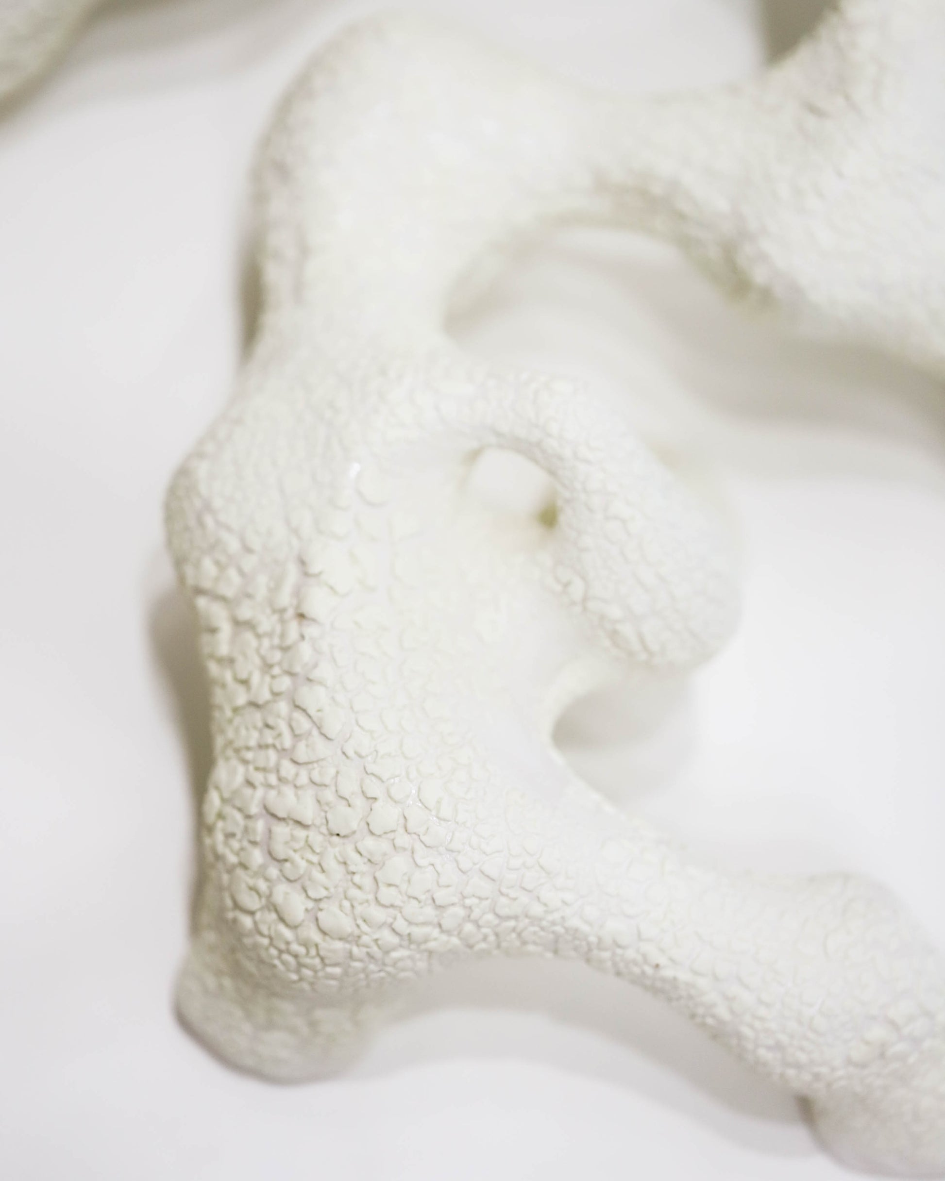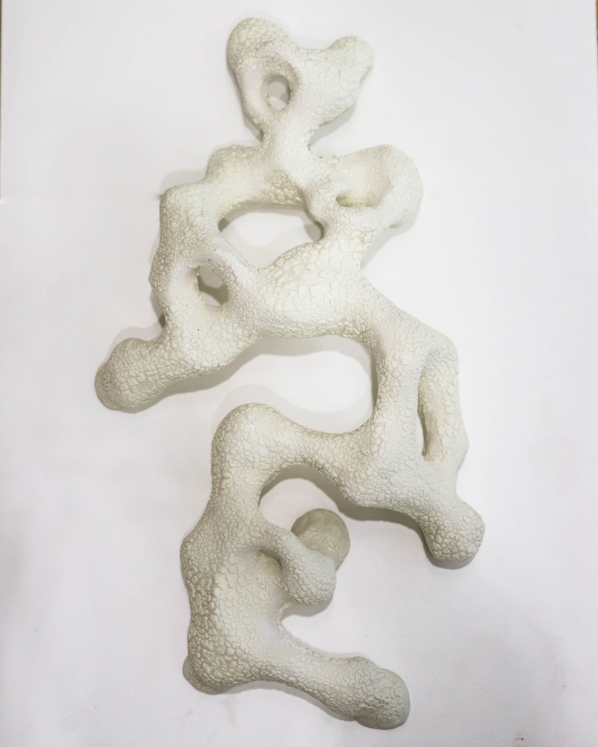 Artist: Paula Cooley. Wall hanging - white, coral-esque shape plays with light and shadow in interesting ways. Clay, underglaze, glaze. 46x26x10cm