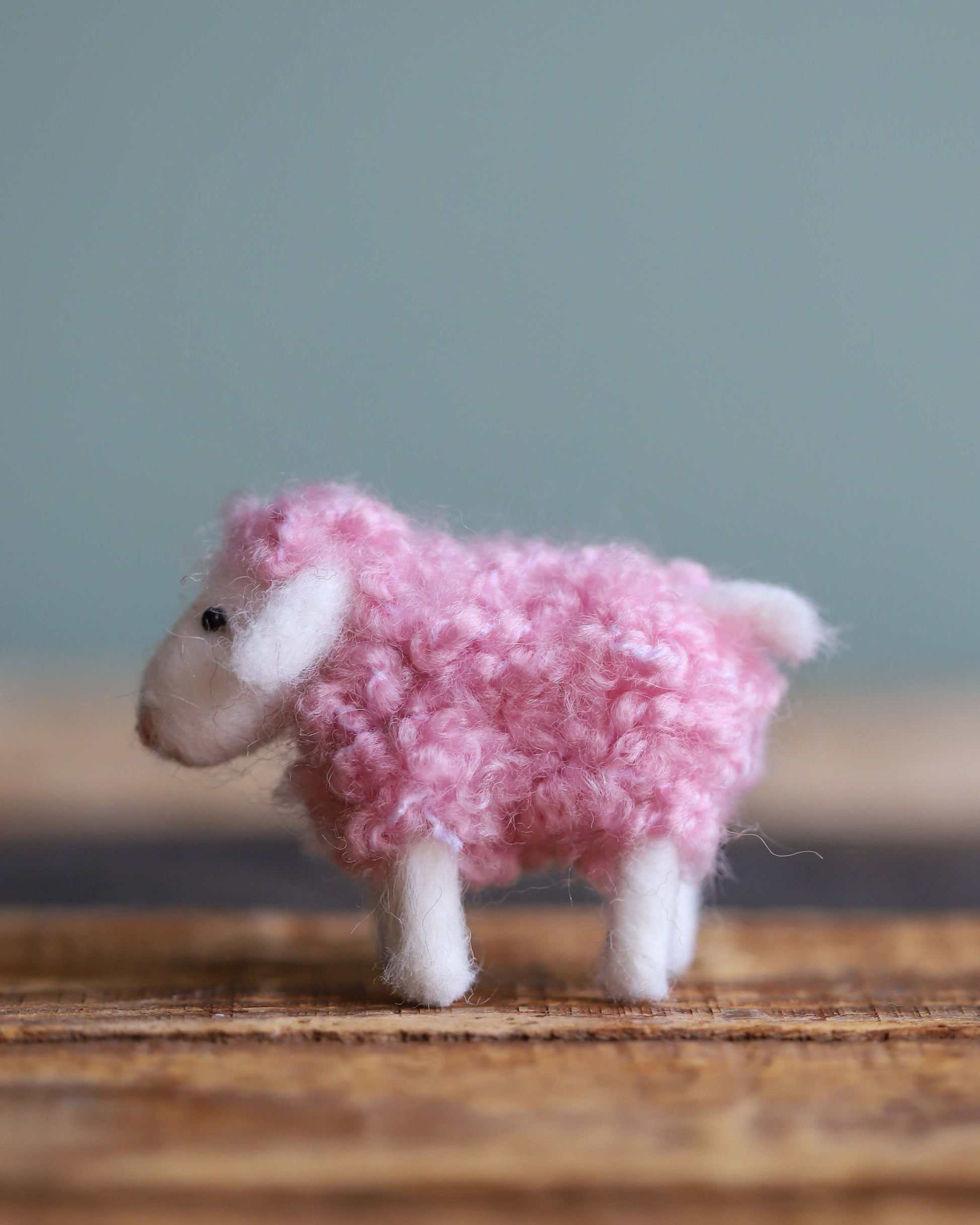 Needle felted wool, pink yarn, thread.