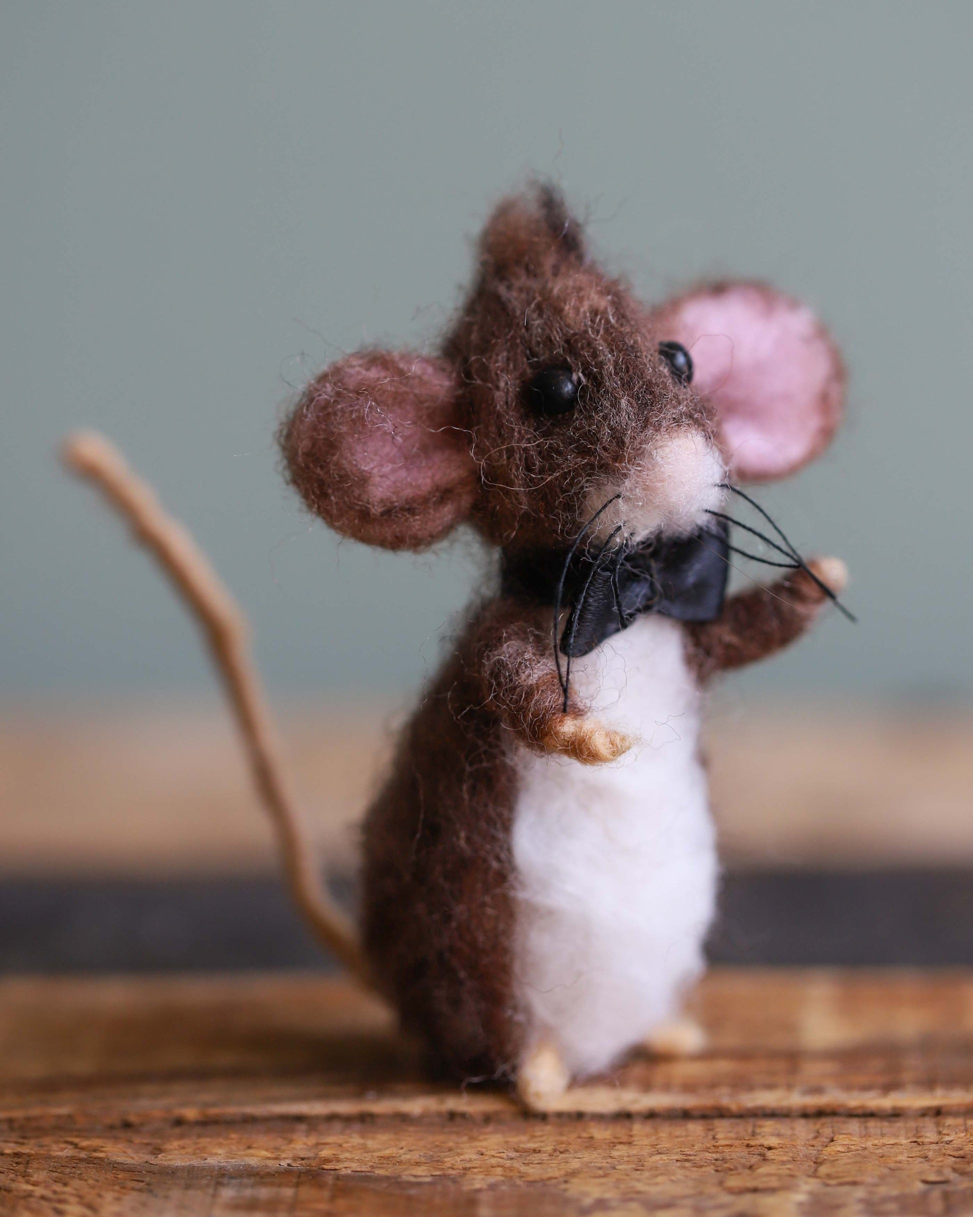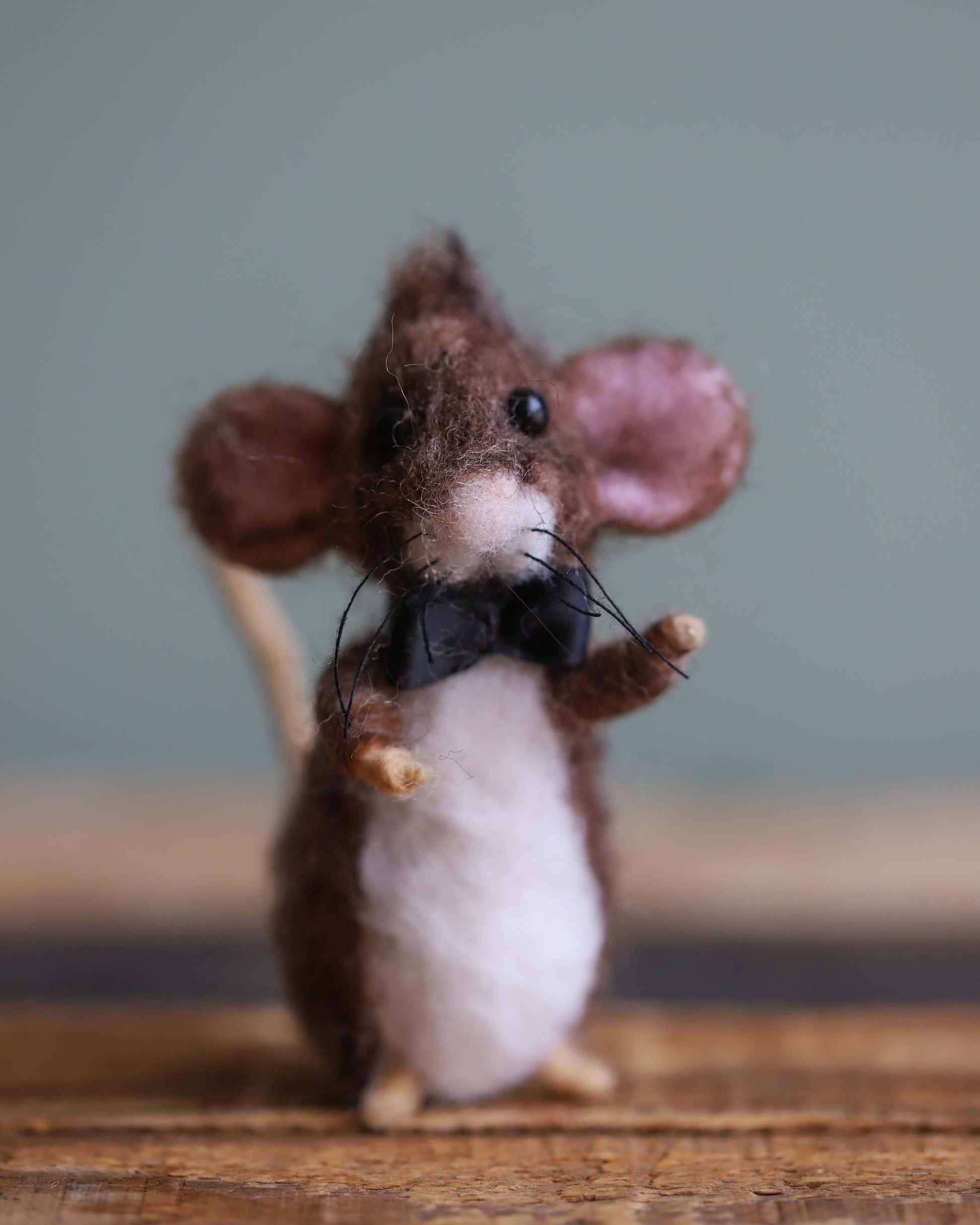 Needlefelted mouse, wire & thread eyes and whiskers.